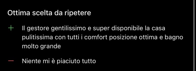 Questo e' cio che dicono gli ospiti dopo che sono stati nelle mie strutture, sono solamente alcuni dei bellissimi commenti che ricevo ogni giorno